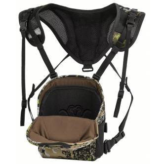 La bolsa cuenta con un cierre magnético silencioso en la parte frontal y ofrece espacio para unos binoculares. En la parte inferior, dispone de presillas MOLLE para añadir accesorios. El arnés de transporte es fácilmente desmontable y ajustable.