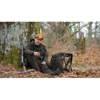 La estructura está cubierta para evitar ruidos al llevar el rifle sobre el hombro. La altura del asiento es de 50 cm y está fabricado en neopreno cálido y cómodo. Capacidad aproximada: 35 litros. El asiento, cómodo y con una resistente estructura de acero, soporta hasta 120 kg de peso.