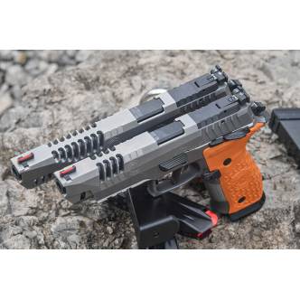 El seguro manual estilo M1911, disponible además de la palanca de desarme en los modelos de servicio, es completamente desconocido en la cuasi evolución de la serie 226/228 de Austria. La gran ventaja es que no interfiere en absoluto con el uso y se integra ergonómicamente en los paneles de la empuñadura como si no estuviera presente. Quienes estén familiarizados con la 228 no tendrán que acostumbrarse a nada nuevo. Las ATc no ofrecen palancas de desarme independientes, pero en la versión básica, la palanca de seguro también funciona como mecanismo de desarme si se aplica una ligera fuerza adicional hacia arriba.