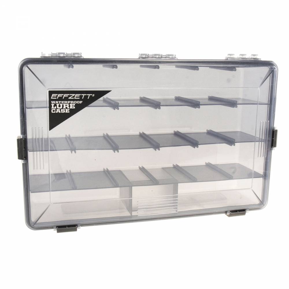 Hoy en día, los señuelos se vuelven más avanzados año tras año, por lo que el almacenamiento del señuelo también debería mejorar continuamente. Los estuches de señuelos a prueba de agua EFFZETT son un gran paso hacia el almacenamiento perfecto de los señuelos. Equipadas con un anillo de sellado y 4 cerraduras, estas cajas de señuelos mantendrán todo tipo de señuelos secos. XL36 x 23 x 9cm